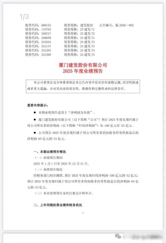 1月23日,建发股份发布公告,说公司在2025年会亏损52亿到100亿,这是它1998年上市以来第一次出现全年亏损,亏损原因很清楚,因为旗下房地产公司联发集团的项目卖得不好,结算利润是负数,还要计提一大笔存货跌价准备,另一个子公司美凯龙,是做家居商场的,由于持有的商场按公允价值计算,房价下跌导致账面价值减少,从2023年到2025年上半年就亏了76亿,上交所反应很快,当天就发函询问这个业绩预告是否符合规定。