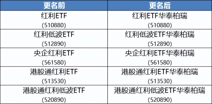 但我最近发现,华泰柏瑞基金发布公告,提前改名:自2026年1月28日起,旗下的红利类ETF的名字后面将统一加上后缀——“华泰柏瑞”。
